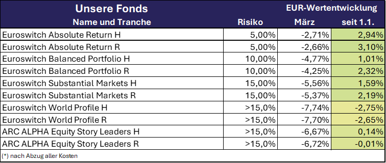 Der März hat einen Großteil der Buchgewinne des Jahres vor allem bei Aktien und Gold gelöscht. Allerdings war eine Korrektur unabhängig vom Krieg notwendig, da viele Bewertungen bereits eine perfekte Welt einpreisten – teilweise unterstützt von stark spekulativen Käufen.