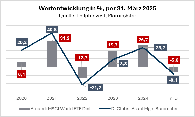 Nettowertpapieranlagen als Teil der Kapitalbilanz weisen für die EU ein Minus aus. Das heißt, mit Ausnahme des letzten Quartals 2024 legten EU-Anleger in den vier Quartalen zuvor mehr Geld außerhalb der EU an als innerhalb: - 68,6 (Q4 2023), - 49,2 (Q1 2024), - 111,4 (Q2 2024), - 49,4 (Q3 2024) und + 82,4 (Q4 2024, jeweils in Milliarden Euro, Quelle: Eurostat). Ein Grund dafür dürfte der MSCI World sein, der führende Index für den globalen Aktienmarkt. Ende März 2025 entfielen 72 % des Index allein auf die USA; Japan, Großbritannien und Kanada machten weitere 12,3 % aus. In anderen Worten, von jedem Euro, der von einem Anleger in der EU in einen Fonds oder ein Mandat mit der Benchmark MSCI World fließt, werden 85 % außerhalb der EU investiert. Das kann nicht ernsthaft im Interesse der Europäischen Union sein. Wirtschaftspolitik geht völlig anders.
